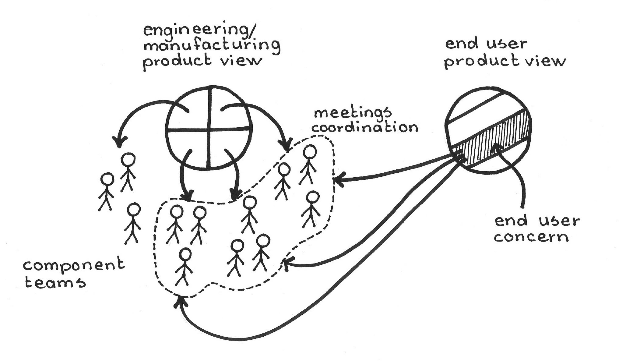 A simple organizational partitioning (i.e., a hierarchy) is enough in simple domains that must deal with only one set of separable concerns. But the hierarchical approach breaks down in the more typical case of development efforts with multiple overlapping concerns. This pushes toward larger, more complex organizational units that try to correct the problem with economies of scope. Yet the most effective work teams are Small Teams, and you need to partition the work somehow.