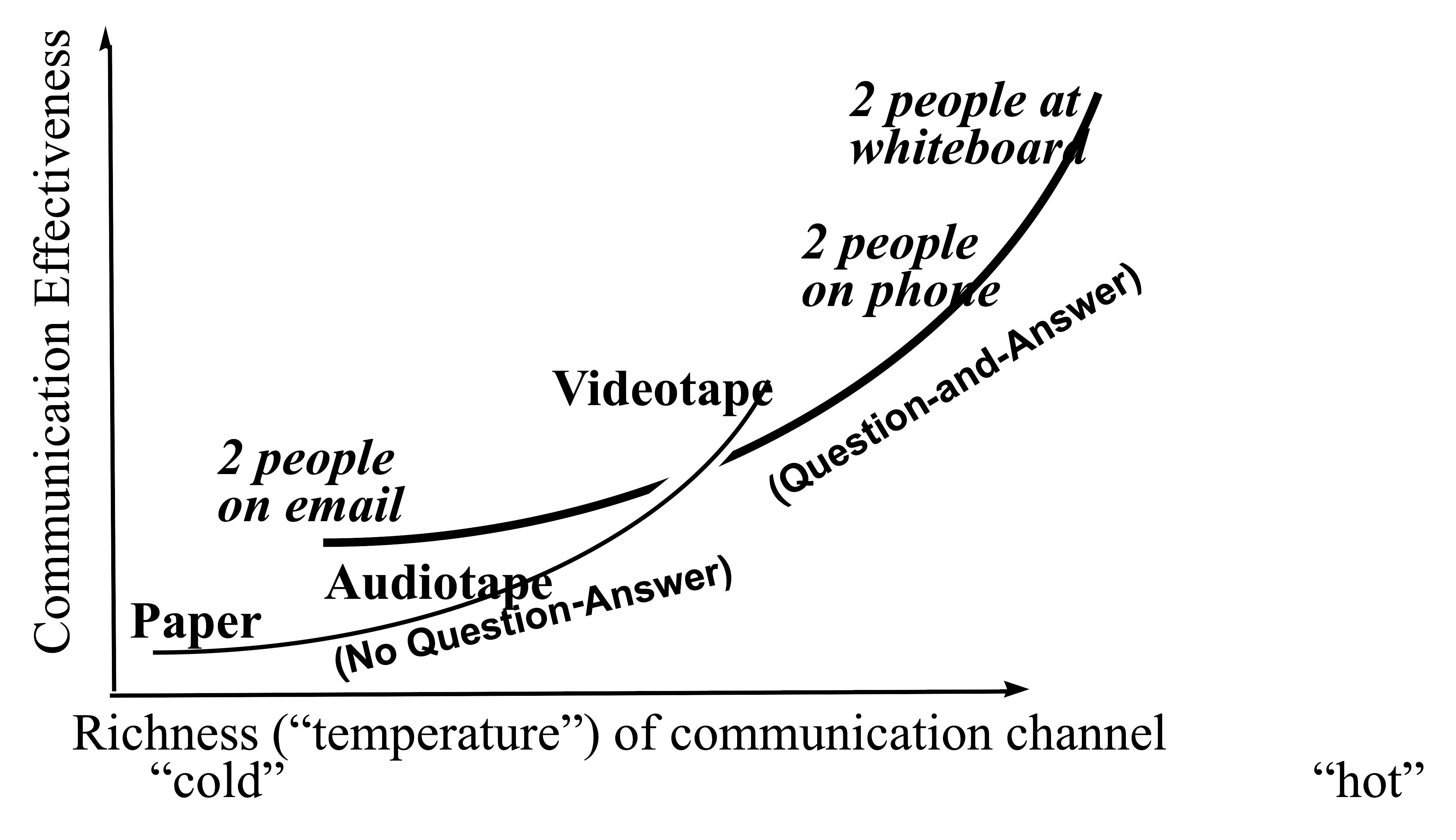 The graph shows two sets of situations: those in which question and answer are available and those in which they are not. “Warmer” indicates that more emotional and informational richness gets conveyed ([1], pp. 90–100).
