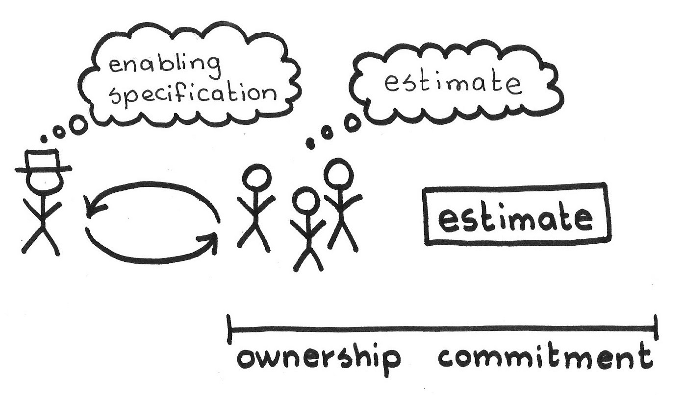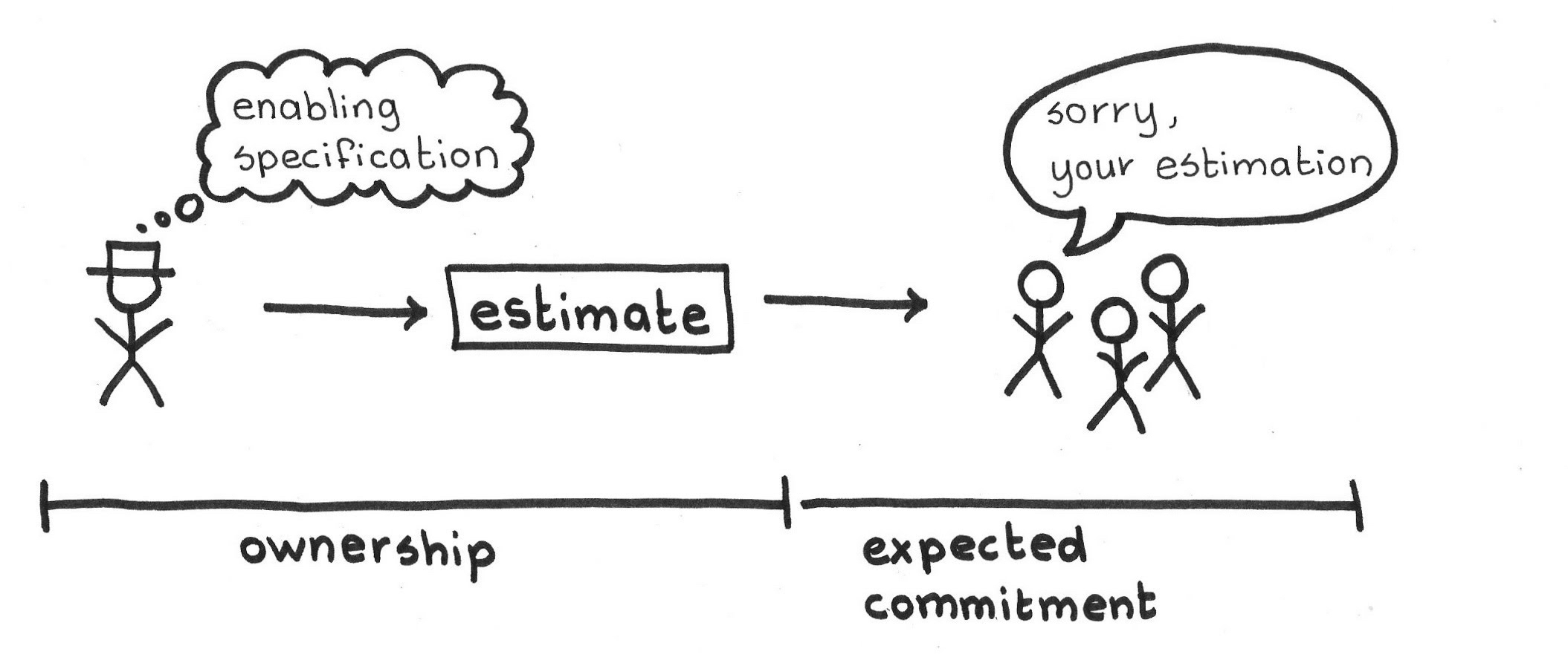 In most applications of this pattern in Scrum, the estimate is only a forecast, and stakeholders should never view it as implying a commitment. On the other hand, no one other than “the pigs” is allowed to speak to estimation. There should never be a ground for challenging an estimate a priori. For example, Product Owners cannot impose their wishes for delivery on the team’s grounded forecast about how long work will take. Empirical insights from experience over time will help the team adjust its estimates to be more accurate.