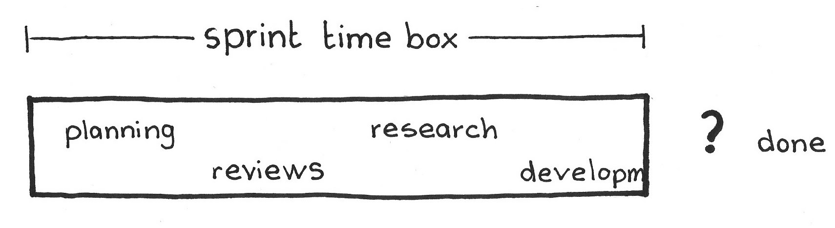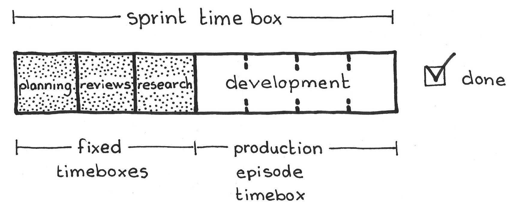 If the team feels that work on any set of non-estimable tasks is complete for the time being, there is no need to fill out the corresponding time box with work. For example, if the team finishes Sprint Planning before its time box is up, the Developers can immediately move on to the Production Episode.