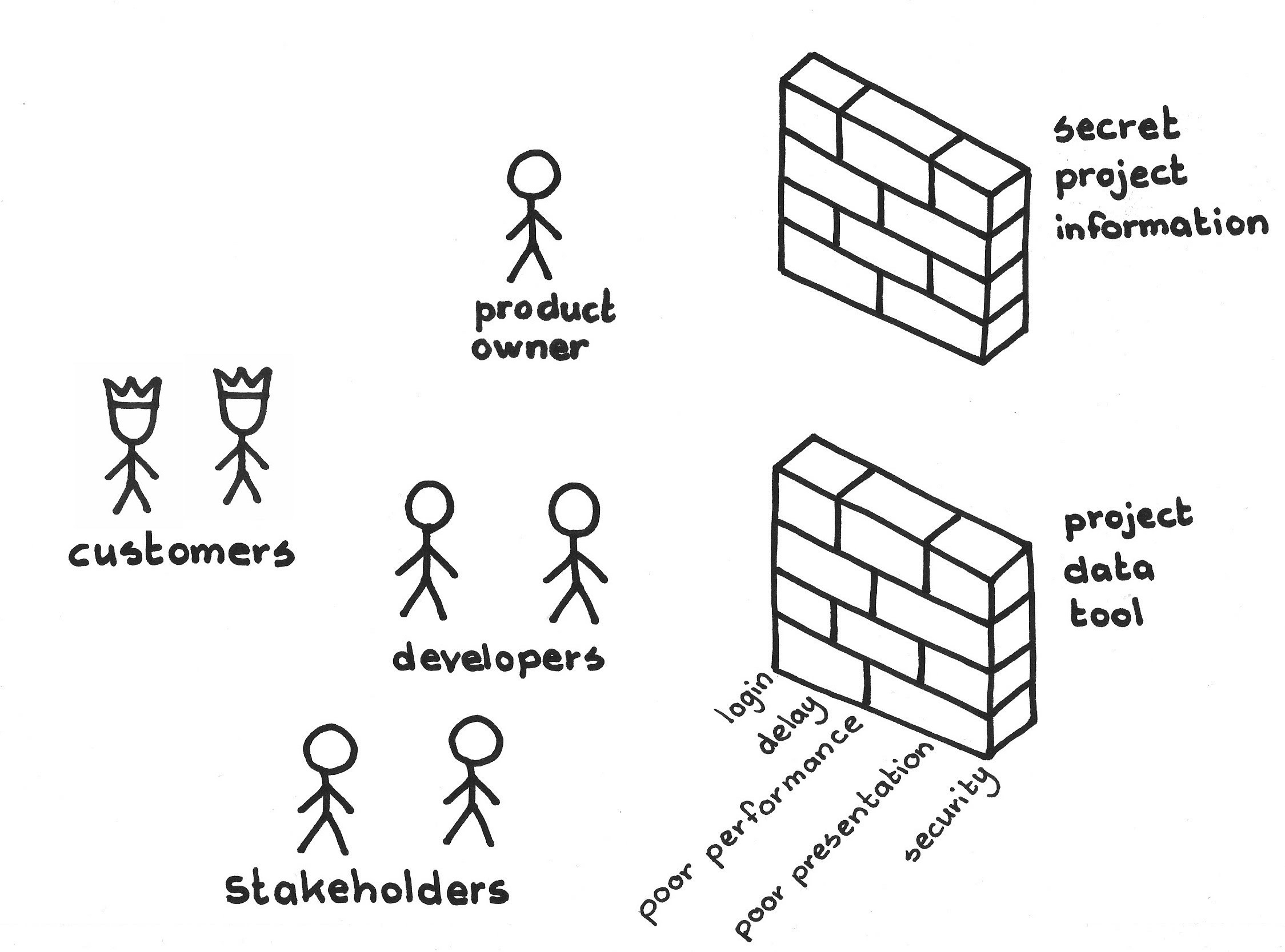 Many organizations have paid for expensive software to manage and organize information, and there may be a push to use this rather than anything hand crafted. Software tools make for information refrigerators instead of information radiators, and we need to be brave enough to admit to making bad decisions such as buying expensive software when we could have used some sticky notes.