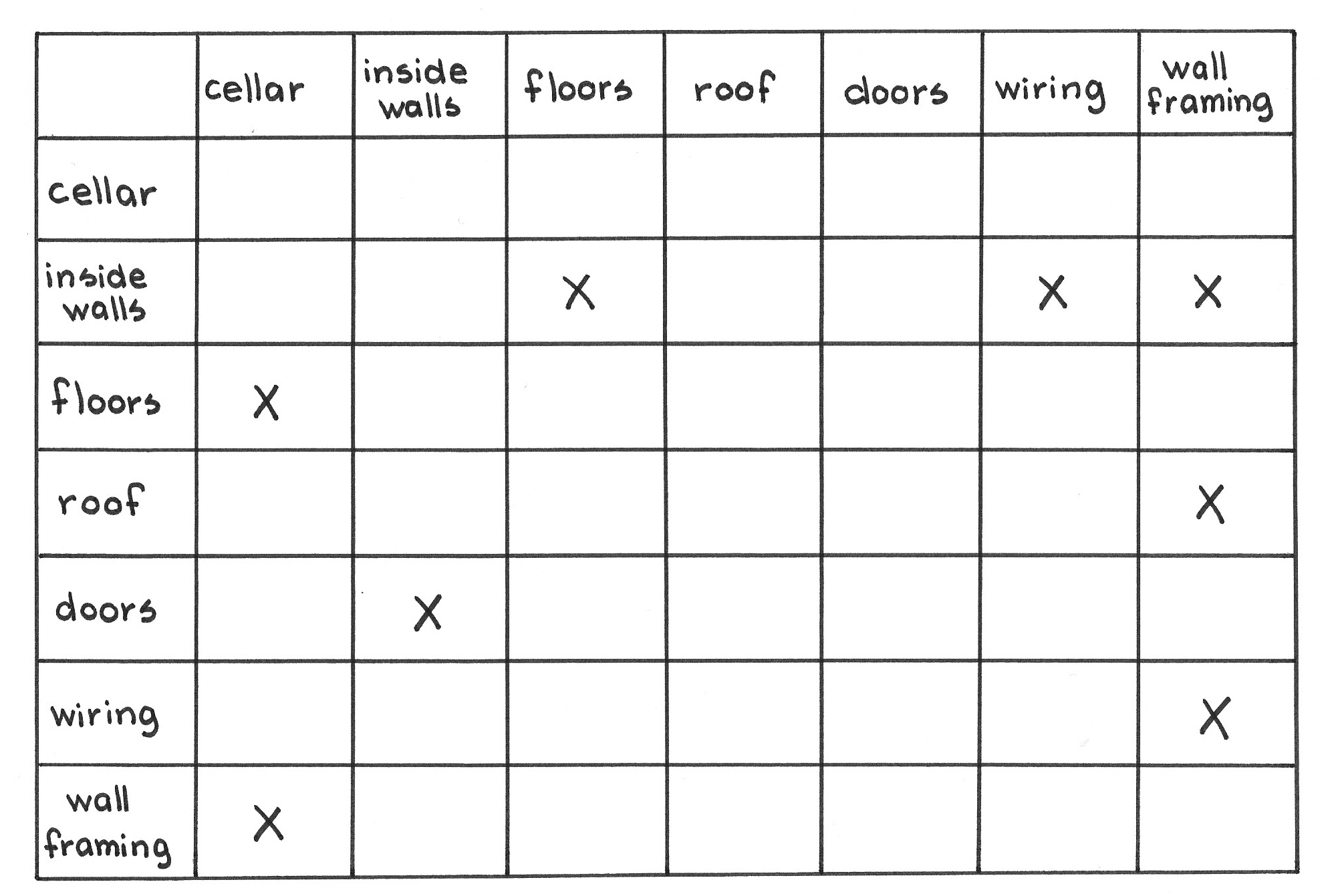 Then sort the matrix so that it is a lower-left diagonal matrix. That is, you pull the last responsible moments forward—you never defer them. Such was the original, pre-XP sense of the phrase “last responsible moment” ([5]). If it is a lower-left diagonal matrix, then every item will come after all of those on which it depends. Further, pulling these decisions forward leads the team to dive into the associated work, which will flush out emergent requirements and increase the level of insight into the problem at hand. The passage of time alone is no guarantee that any new insights will come along: the team must actively take an item into design and implementation to make emergent requirements appear.