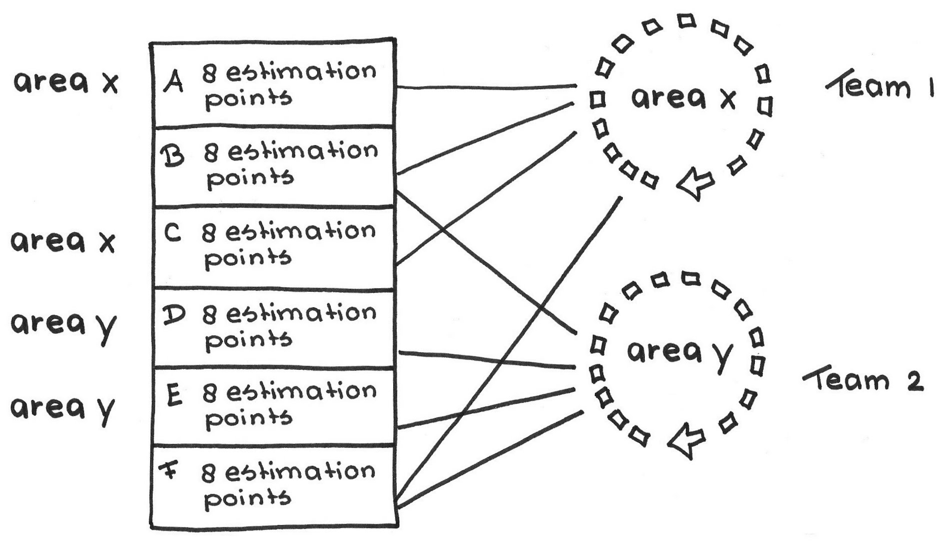 It is difficult and wasteful for a team to estimate Product Backlog Items (PBI) outside its line of specialization. For example, you probably don’t need a team working on the infotainment system for a car to also estimate the PBIs for (the specialized area of) the brake system, so involving it in such estimation would be wasteful. On the other hand, we want to recognize the ability of individuals to contribute from their perspectives. In fact, key insights sometimes come from the most unlikely places. As human beings we all have insights into all human phenomena. However, that isn’t reason enough to drag all of humanity into an estimation exercise. A good approximation is enough. Estimation is waste in the Value Stream and we should minimize its cost.