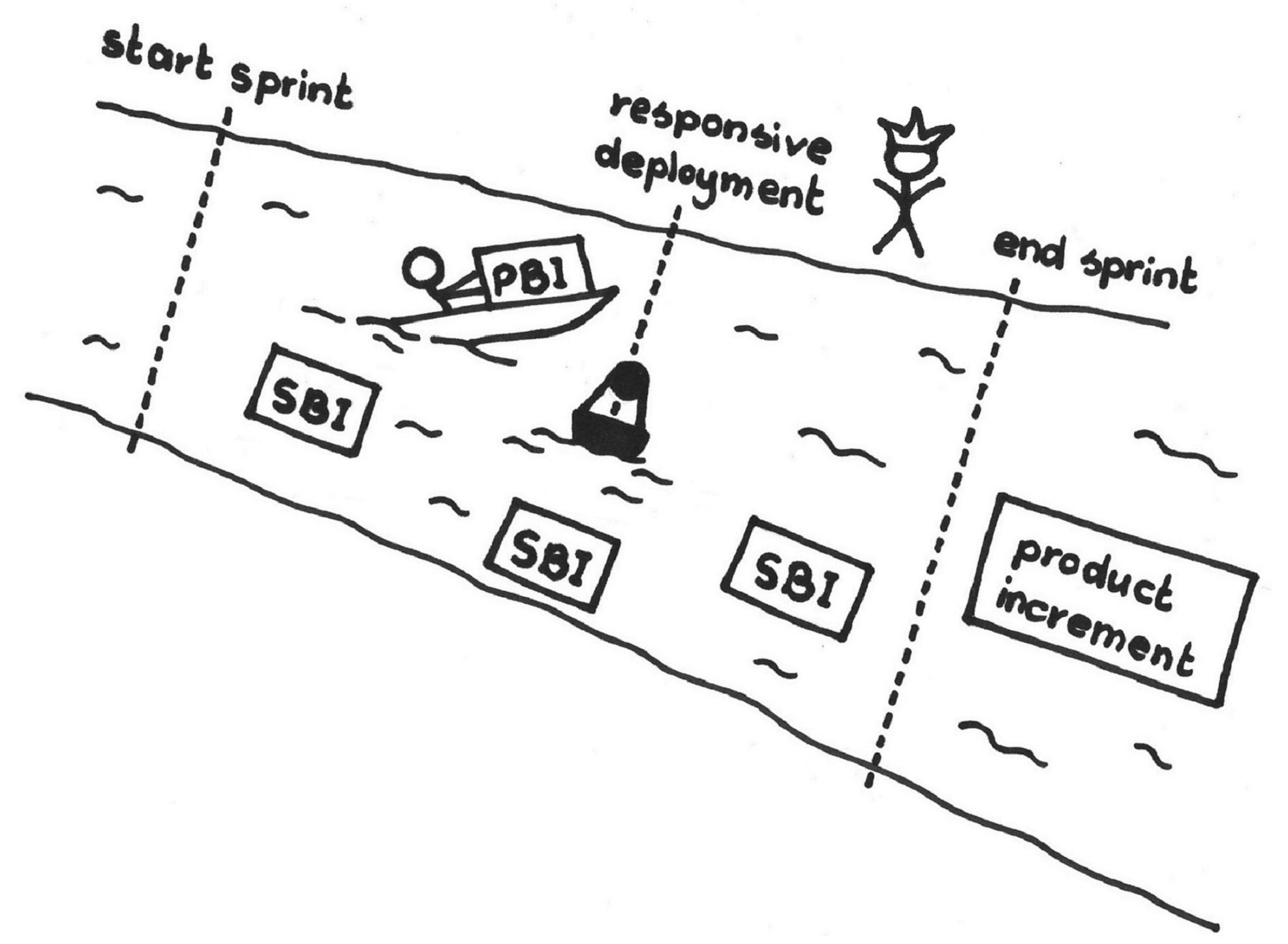 Emergency Procedure employs this pattern under more extreme circumstances than one finds in textbook Scrum. In Emergency Procedure, the team can deliver a product in response to an emergent request from the Product Owner, before the end of the Sprint, usually in some highly urgent context that escalates to top management as a “bet the company” high-risk issue. Not all invocations of Emergency Procedure entail abnormal Sprint termination. Responsive Deployment turns the exception into the rule: every day the Development Team works to finish what it can deliver soonest. The team manages itself to these deliveries, often without any particularly urgent interaction with the Product Owner. Often, the team can deliver in the order that best suits planning constraints inside the Development Team. And often, there is enough trust between the Development Team and the Product Owner that even the Product Owner can add solid guidance to the ordering of PBI work within the Sprint. Such trust is necessary for this pattern to work; otherwise, the Product Owner will be seen as disrupting an Autonomous Team. To run a Scrum Team this way—with daily Product Owner engagement—requires a high degree of team maturity.