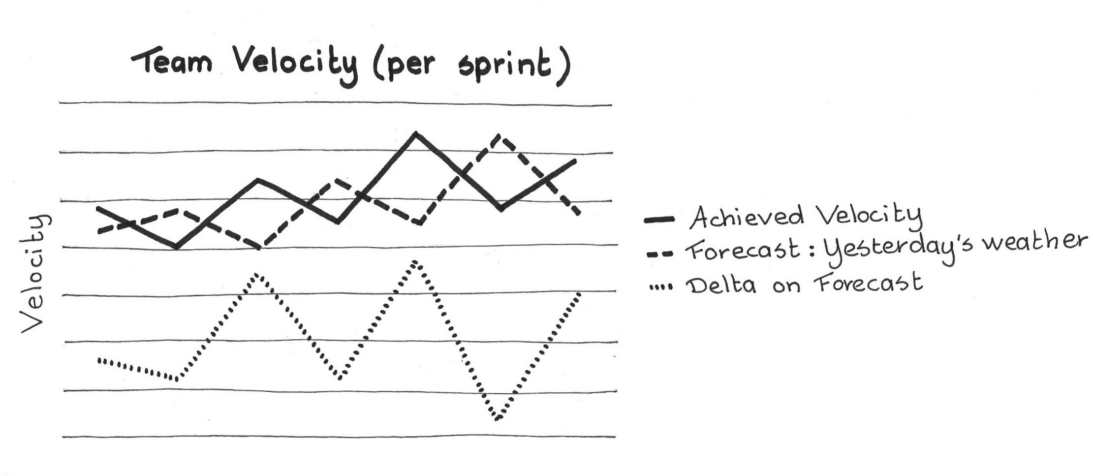 In summary, while an accurate picture of the team’s velocity is a crucial metric for both forecasting and for improvement, many things conspire against applying Yesterday’s Weather too simply.