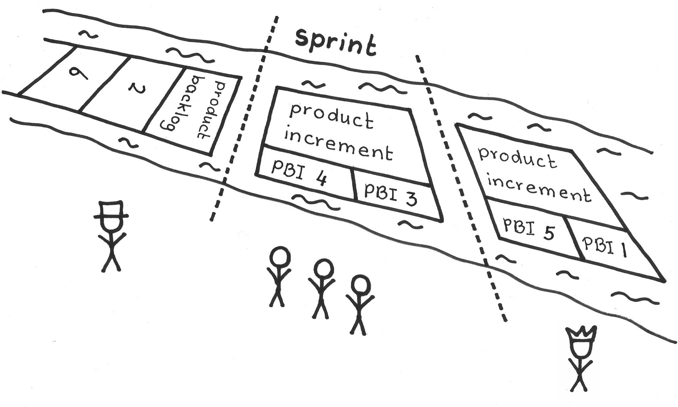 …now that the team has defined and refined the Product Backlog, the Product Backlog Items (PBIs) still represent only potential value. They can produce value (i.e., move to the end of the Value Stream) only when development makes them real. You are ready to embark on a Sprint to develop one or more PBIs to create a Potentially Shippable Product Increment.